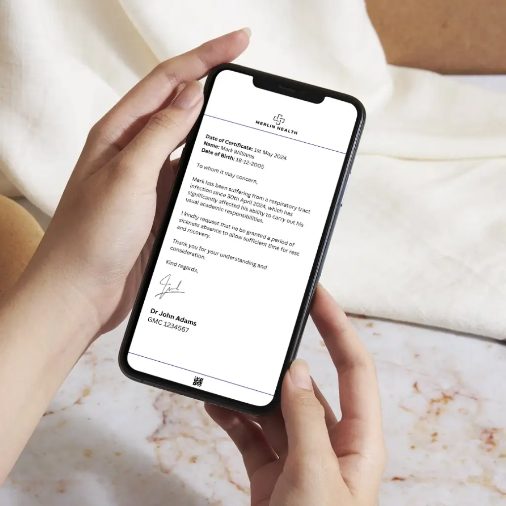 At Merlin Health, our UK GMC-registered doctors issue same-day medical certificates for students who need documentation for illness-related absences, special circumstances, exam rescheduling, or coursework extension requests.