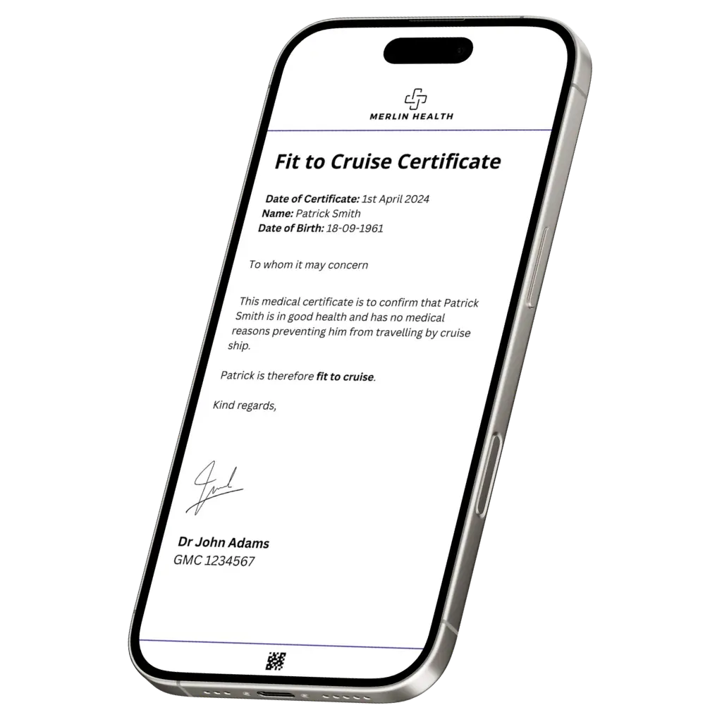 At Merlin Health, we provide a fast, private alternative. You can complete your assessment online, and receive your certificate the same day, reviewed by a UK-registered doctor experienced in cruise medical requirements.
