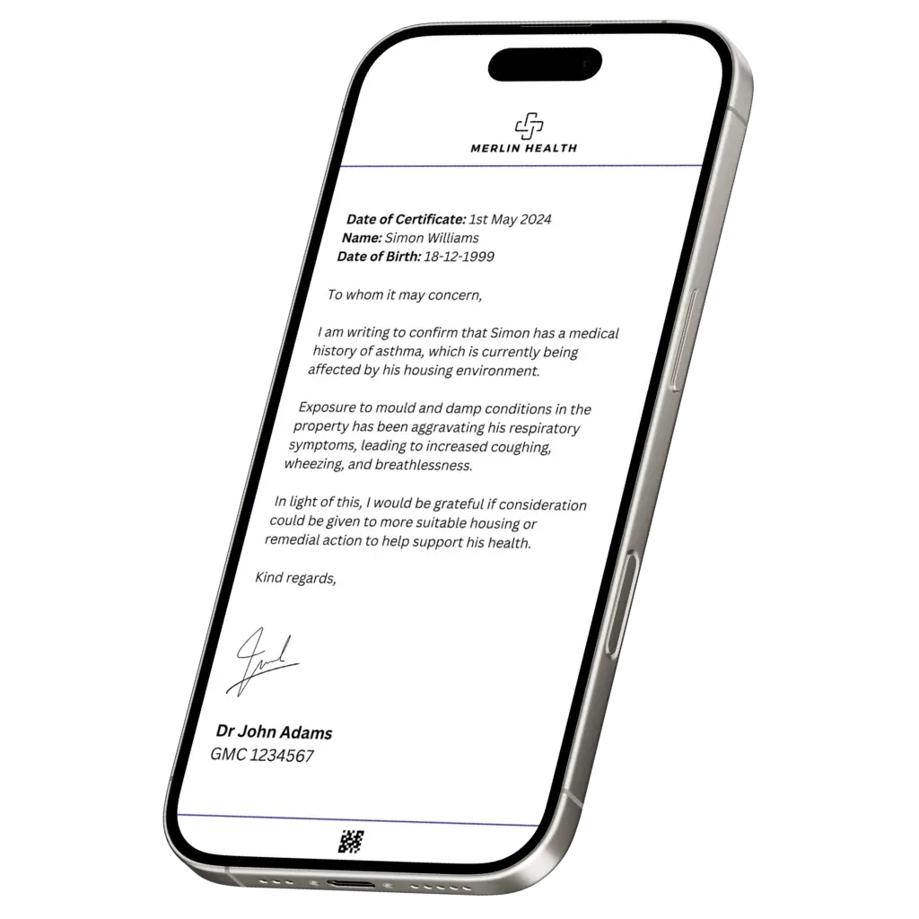 Each Merlin Health letter includes a secure QR code and the doctor’s credentials, allowing councils and housing providers to instantly verify its authenticity.