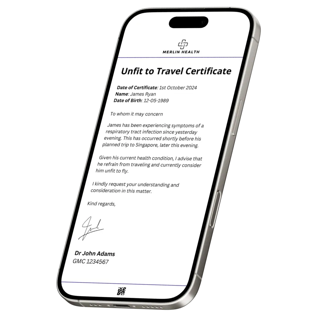 Get a same-day unfit to travel medical certificate from a UK-registered doctor — confirmation of illness for airlines, cruises, or travel insurers, delivered straight to your inbox.