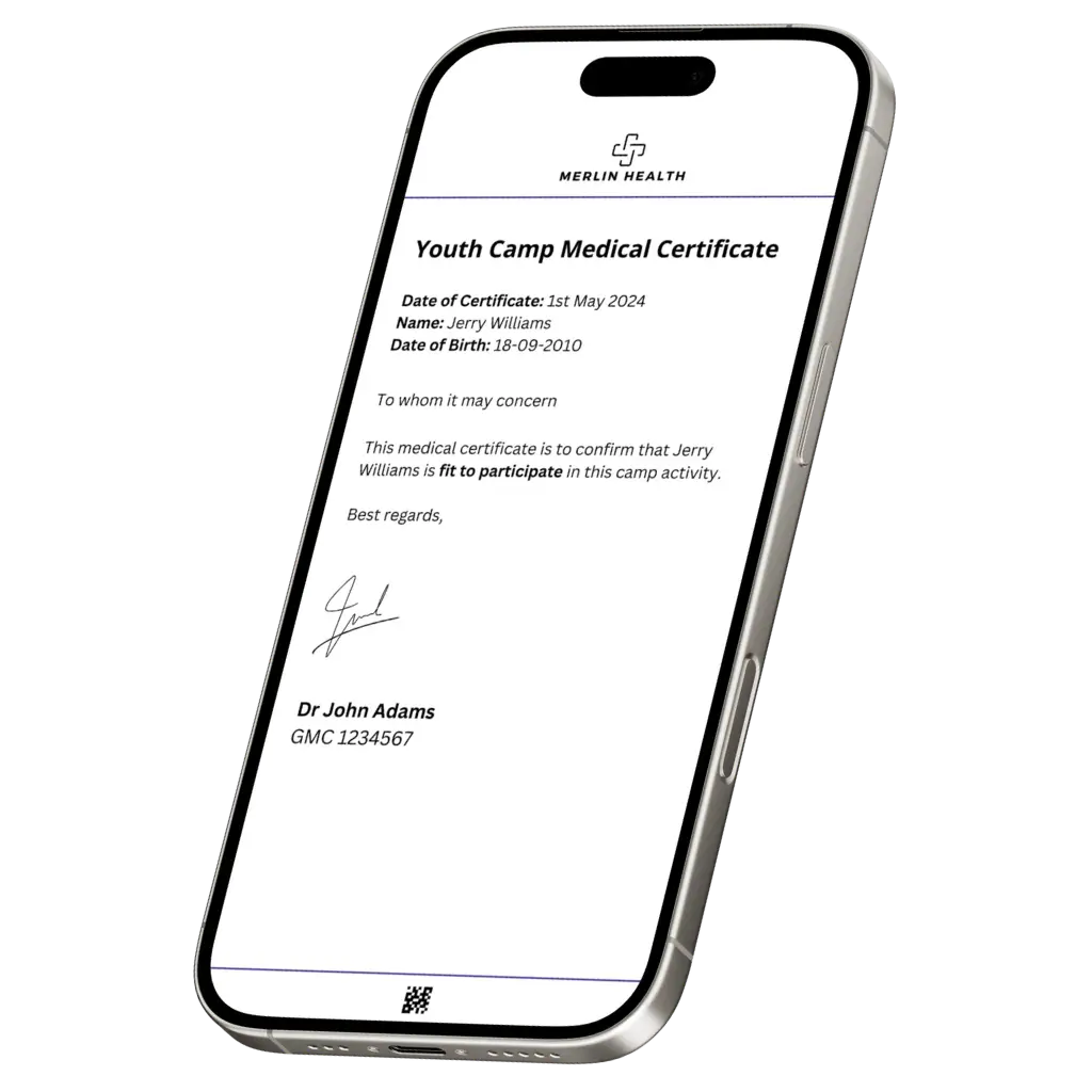“When your child is preparing for a summer camp or school trip, the last thing you need is paperwork slowing things down. At Merlin Health, my team and I make it simple to obtain a Youth Camp Medical Certificate — quickly, securely, and fully online. Every certificate is reviewed by a UK-registered doctor and trusted by organisers worldwide. We understand how important these experiences are, and we’ll do our utmost to help your child get cleared for camp without delay.”