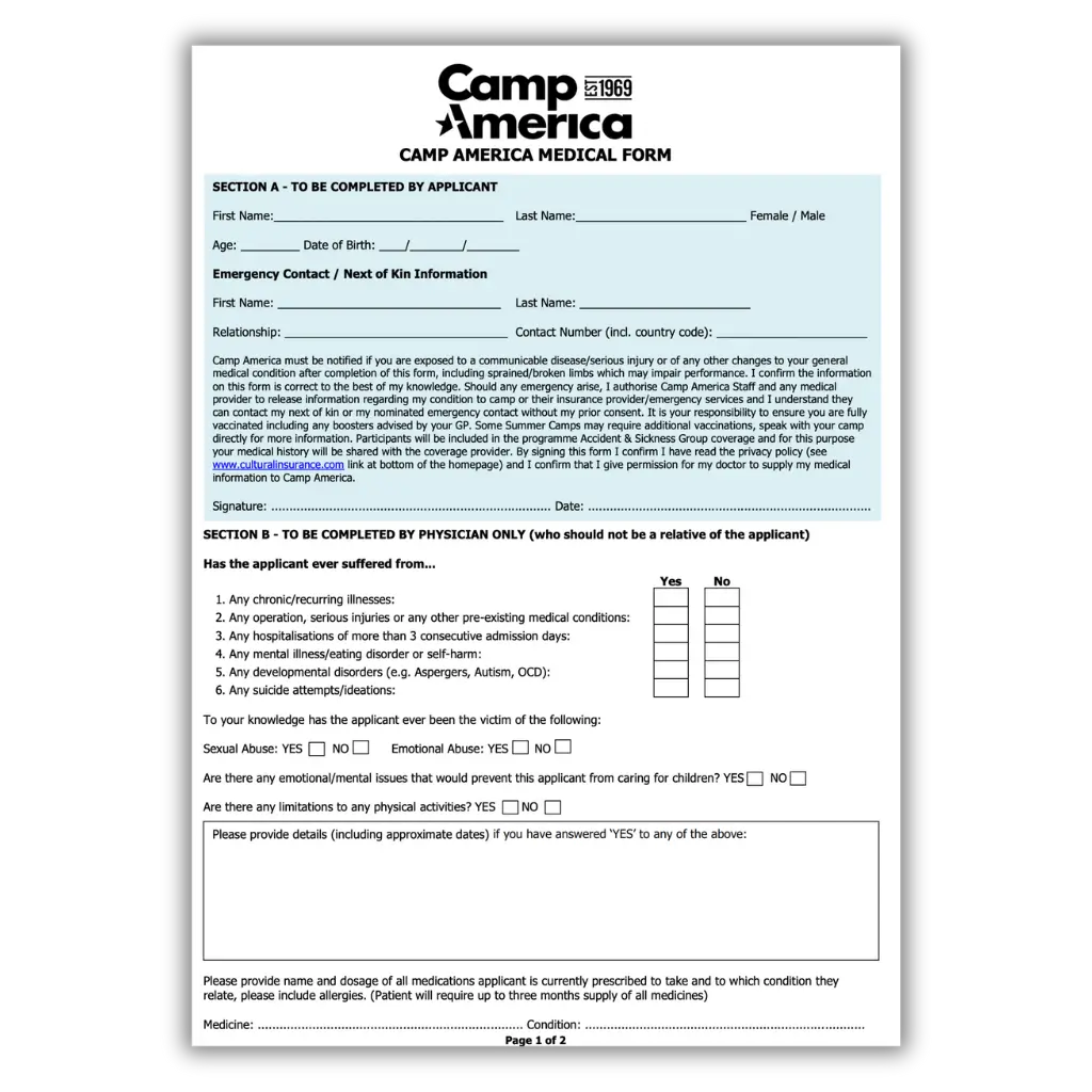 Yes. For an additional fee of £25, our doctors can complete your camp’s own medical form — including forms required by Camp America and other youth programmes. Simply upload the form during checkout or send it to us after your application.
